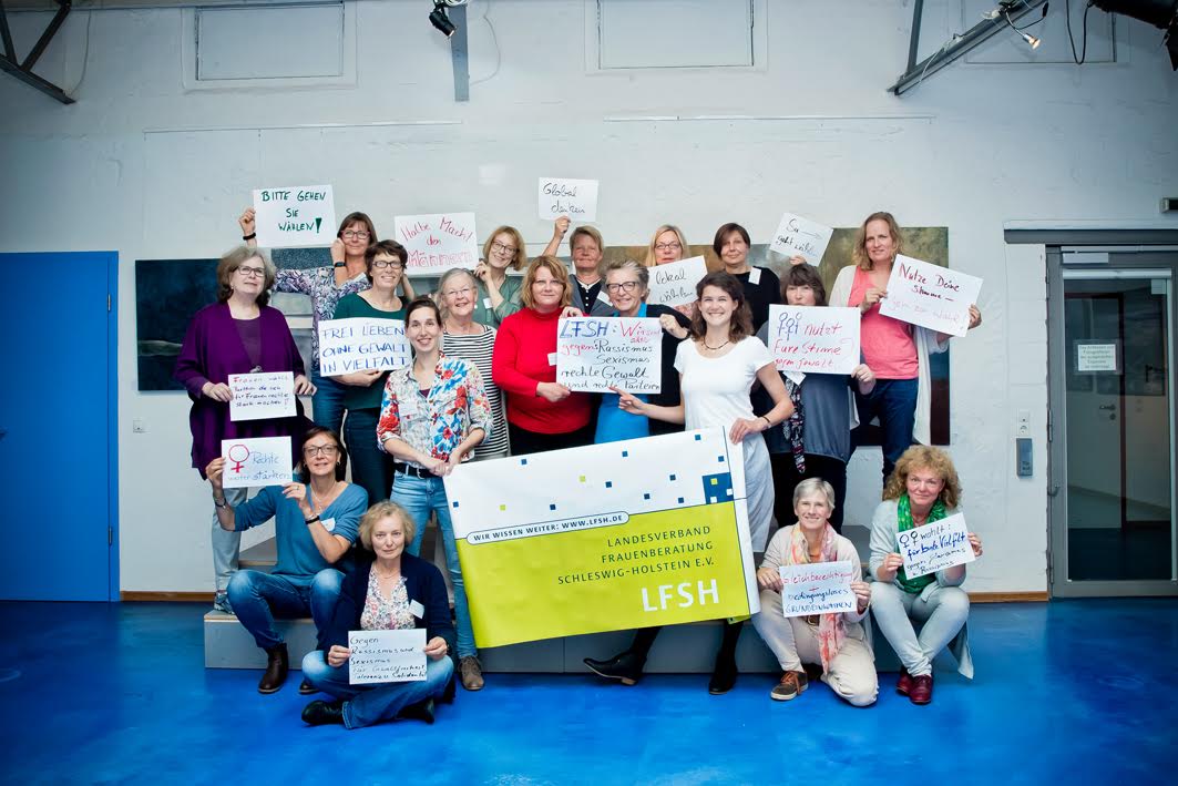 Der LFSH hat die Geschäftsstelle in Kiel neu aufgestellt. Drei Frauen setzen sich mittlerweile hauptamtlich für eine bessere Ausstattung der Frauenberatungsstellen und Notrufe im Land ein. Bei einem Treffen in Bad Oldesloe machten die Fachberatungsstellen vielfältig deutlich, wie wichtig eine aktive Wahlbeteiligung ist (siehe Foto). Unsere Ziele sind mehr Lebensqualität für Frauen in allen gesellschaftlichen Bereichen und die Unterstützung gewaltbetroffener Frauen. Mehr Informationen unter www.lfsh.de